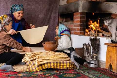 Baking Traditional Azerbaijani Flatbreads in Wood Oven